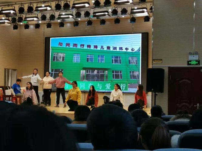 2019年12月7日,在吉林外国语大学东方语学院青联的带领下,志愿者们乘坐轻轨前往北环城路华亨名城特殊儿童训练中心,参加一场特殊的聚会——“与光同行”志愿活动。举行“与光同行”活动的目的是帮助自闭症儿童更好的认识这个世界,同时让外界更好的了解“自闭症儿童”这一特殊的群体,近距离的接触这群“来自星星的孩子”。今天在这里,将要举办一场富有意义的活动——2019“与光同行”年会。