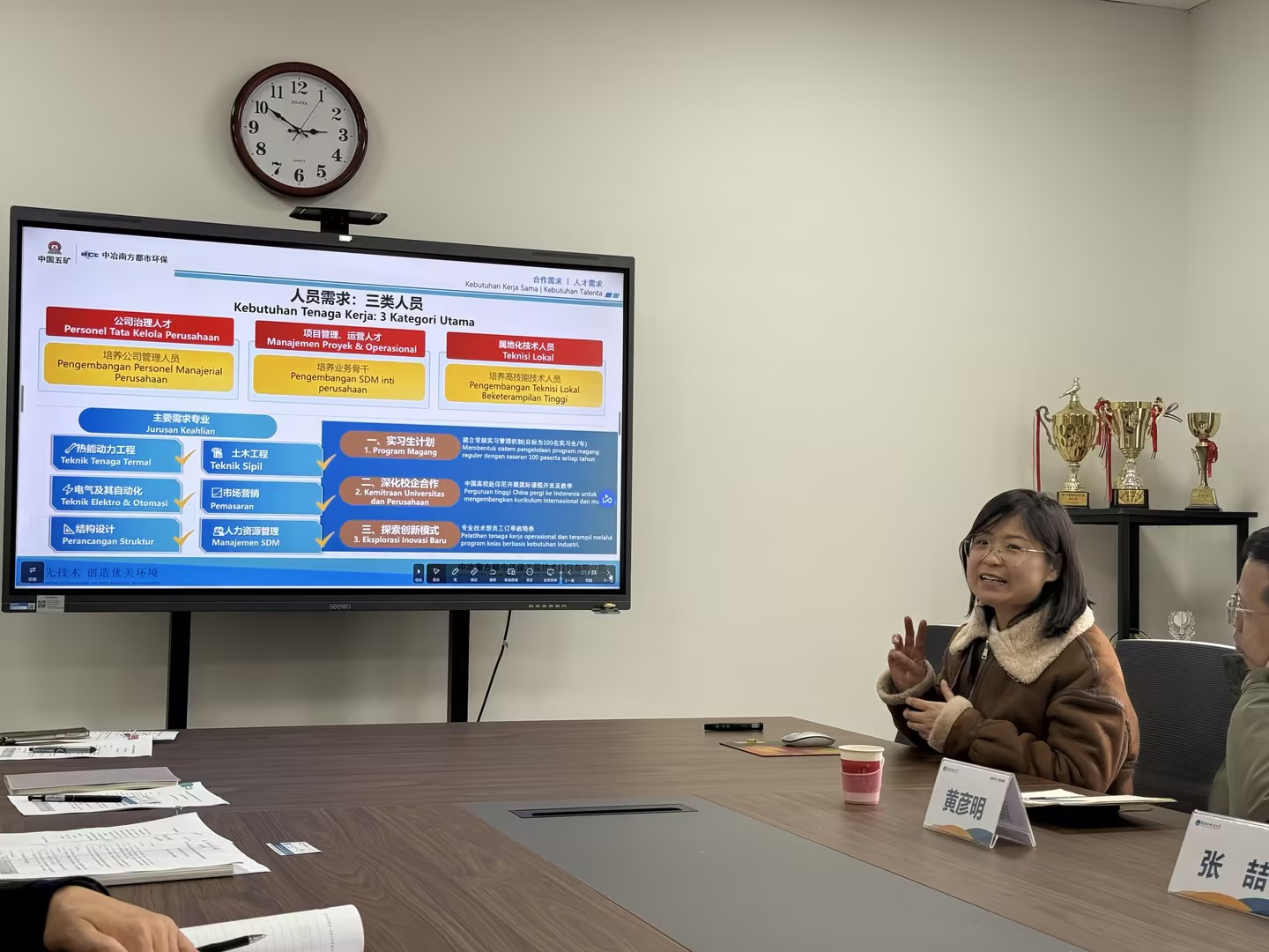 洽谈会上,企业方张喆主任详细介绍了中冶南方都市环保印尼公司的发展概况、业务布局及人才需求。作为隶属中国五矿的央企子公司,该公司深耕印尼能源化工、环保电力等领域,急需“印尼语+技能”复合型人才,匹配多个岗位,并为实习生及员工提供完善的培养体系、优厚的薪资福利与广阔的发展空间。