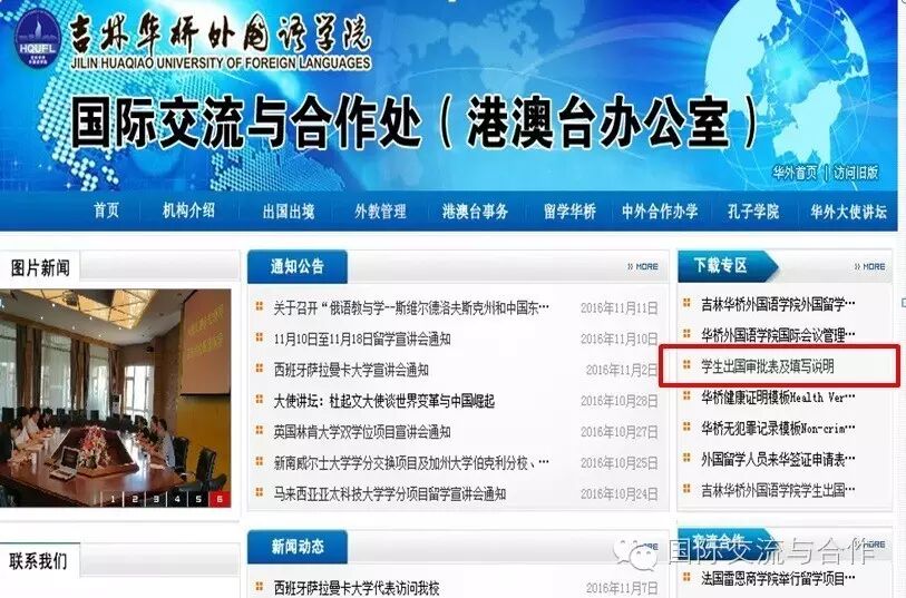 在“国际交流与合作处”网页的下载专区下载