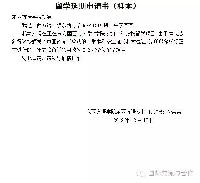 另外,打算申请项目延长的同学,除了上述必交的材料之外,还需要提交《留学延期申请书》留学延期申请书