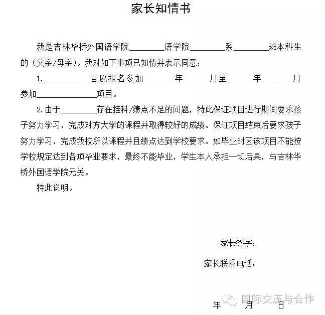 不及格的同学和绩点不足2.0的同学需要提交以下的材料学生家长填写材料
