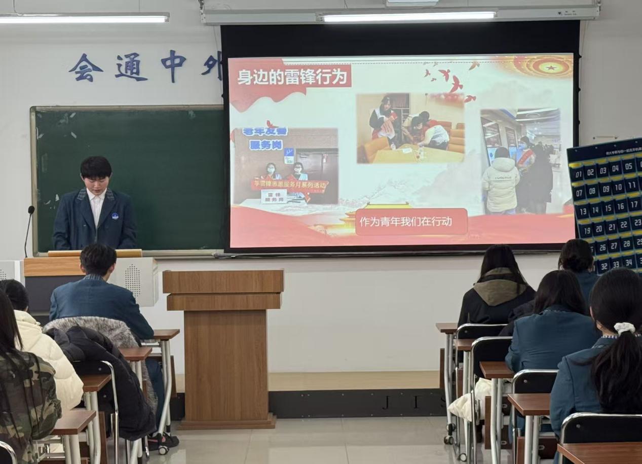 阿语2401班吴昊川以自身行动为大家讲述了新时代的雷锋故事,让雷锋精神在青年心间落地生根。雷锋精神从不是遥远的口号,而是藏在日常的点滴善举里,是课间随手清理教学楼的垃圾、守护校园整洁的自觉,是校门口主动护送老人过马路、传递尊老暖意的真诚,这些平凡的小事,都是雷锋精神最鲜活的模样。这份精神,是服务人民、助人为乐的奉献,是脚踏实地、履职尽责的敬业,更是新时代青年该有的精神底色。吴昊川同学的分享也让我们深刻懂得,雷锋精神从不在远方,就藏在每一次伸手、每一份坚持里,作为新时代大学生,我们更应接过雷锋精神的接力棒,从我做起、从身边小事做起,以点滴行动践行雷锋精神,做雷锋精神的践行者与传播者,让温暖与善意遍布校园、融入日常,以青春之姿诠释时代新人的责任与担当。