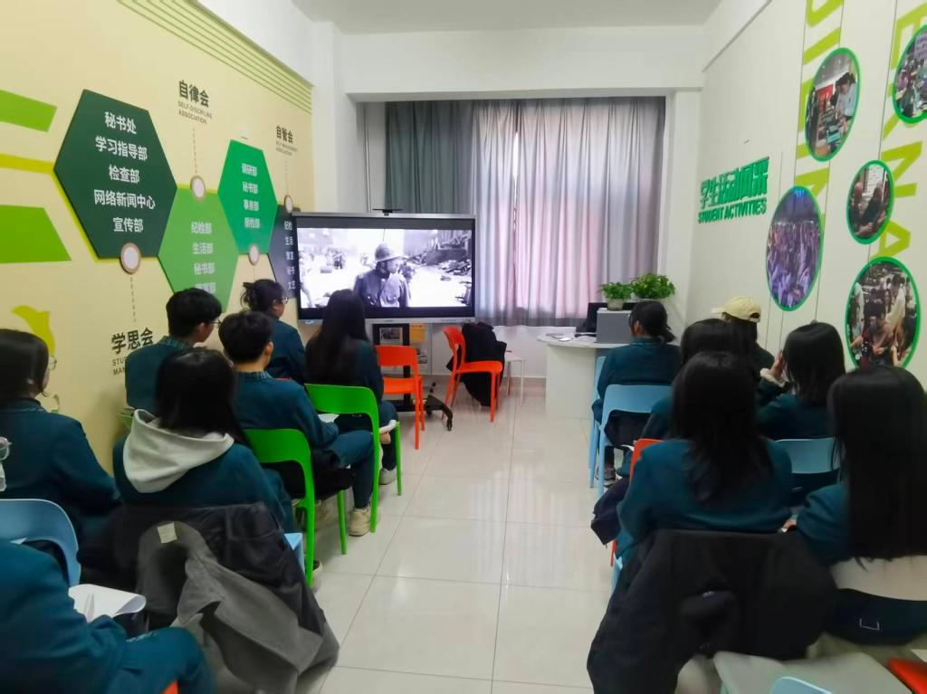 观影过程中,现场气氛庄严肃穆。同学们全神贯注,被影片中震撼人心的历史场景所触动。从中国士兵的浴血抵抗,到普通民众的艰难求生,再到国际友人的人道主义援助,每一个情节都让大家深刻感受到民族危亡之际的沉重,并被那段历史的悲壮所震撼。当看到无辜同胞惨遭屠戮时,不少同学流下了悲痛的泪水,当看到有人挺身而出保护弱者时,大家又被那份勇气与担当所感染。